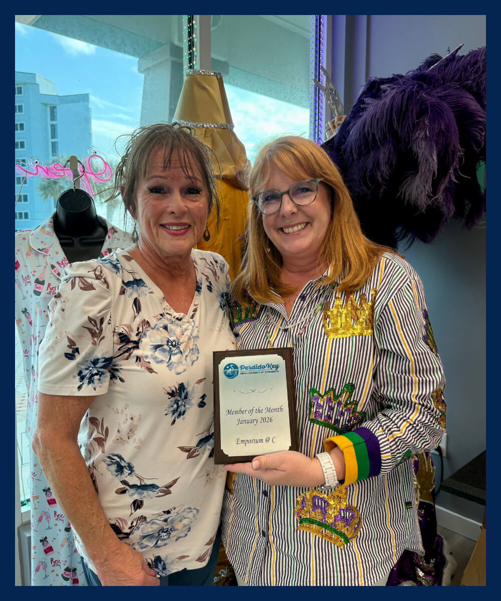 The Member of the Month distinction is a monthly honor presented by the Perdido Key Area Chamber of Commerce to recognize a member business that demonstrates outstanding commitment to excellence, active participation in Chamber initiatives, and meaningful contributions to the local business community.